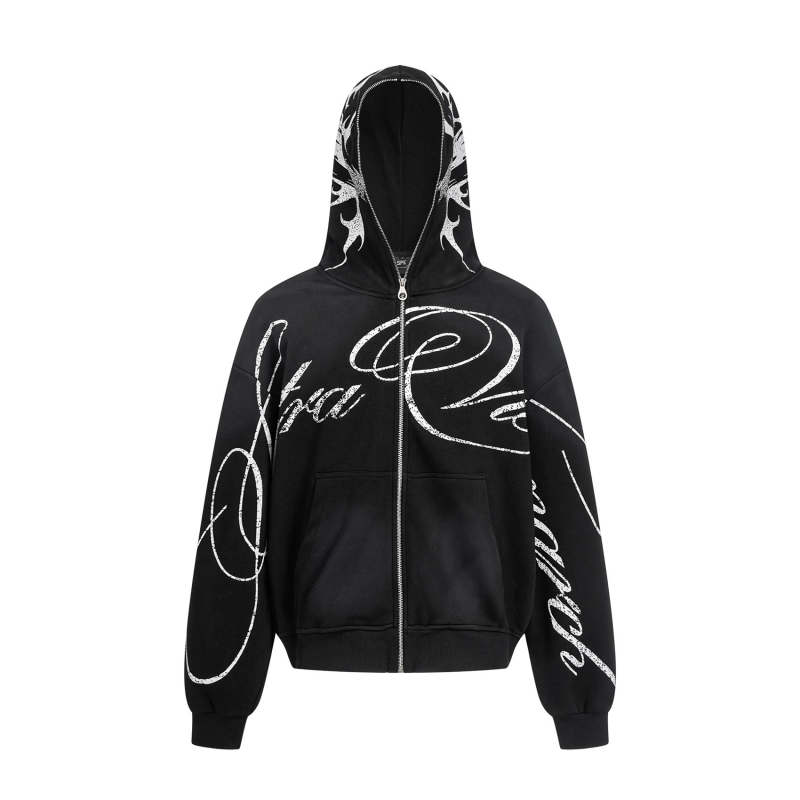 Wholesale Custom Graffiti Print Zip-Up Hooded Sweatshirt Factory Bulk Customizable